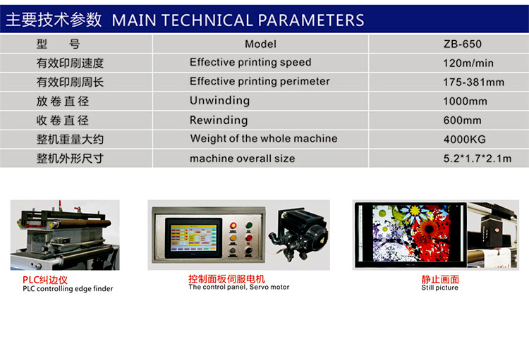 1、本機(jī)收放卷采用伺服電機(jī),大大提高了機(jī)器自動(dòng)化程度,具有速度快、套印精度高等特點(diǎn)。